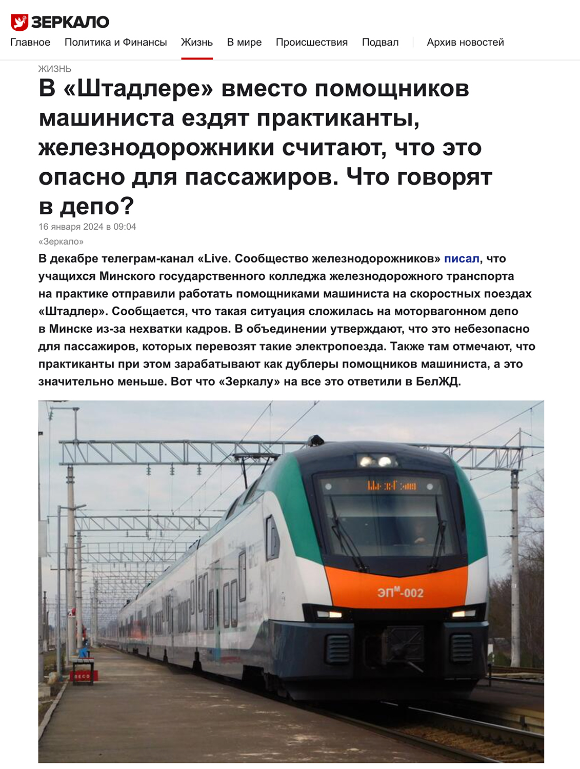 Это мы о комментариях к нашей публикации «Крепче держитесь за поручни – работают практиканты!» начальника отдела подвижного состава Минского отделения БЖД П.Чурая и других «руководителей» с БЖД, опубликованных на информационном ресурсе «Зеркало».